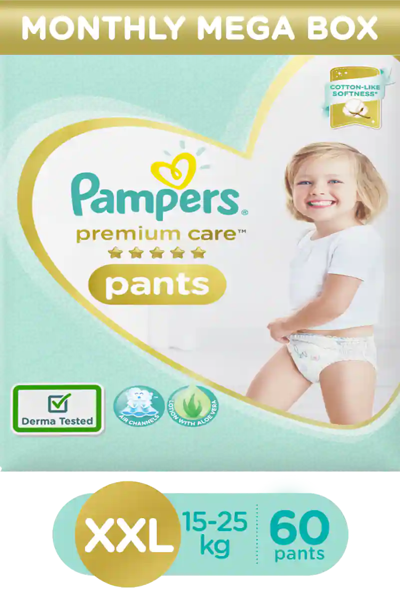 New Pampers Premium Care Pants come with extra gentleness and caring touch for your baby’s delicate skin so they get maximum comfort and dryness in the diaper area. Its cotton-like soft material is best for the delicate and sensitive skin of the babies and has 3 air channels that help your baby’s skin breathe. It contains Aloe Vera lotion that protects the little one’s gentle skin. Give your little munchkin a 5-star comfort with features like the wetness indicator so there is no compromise on their comfortability and care.