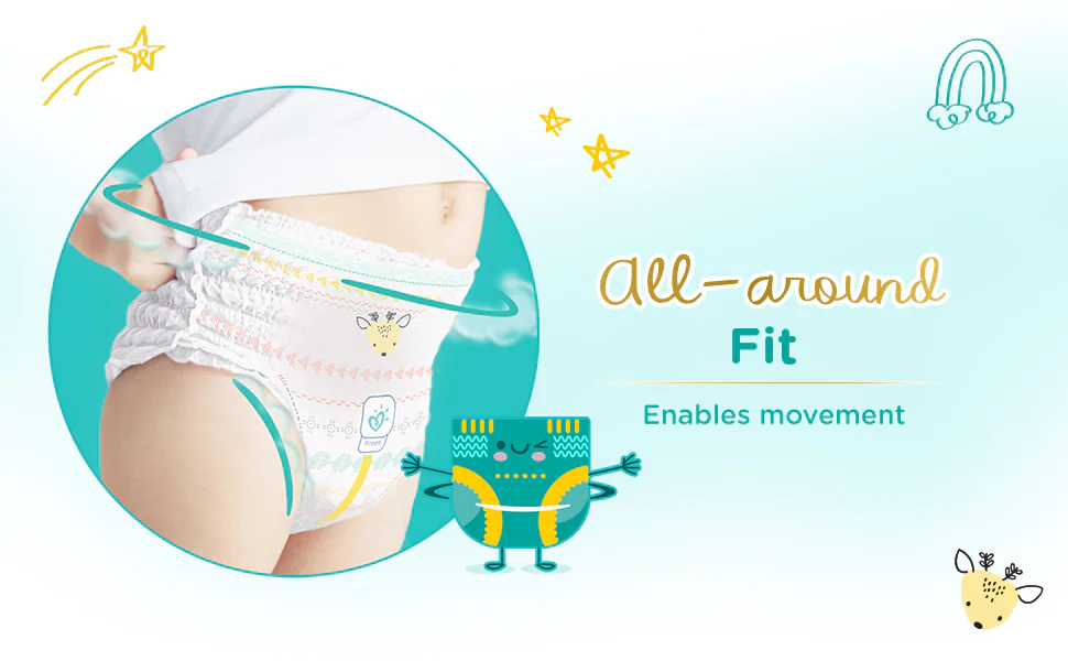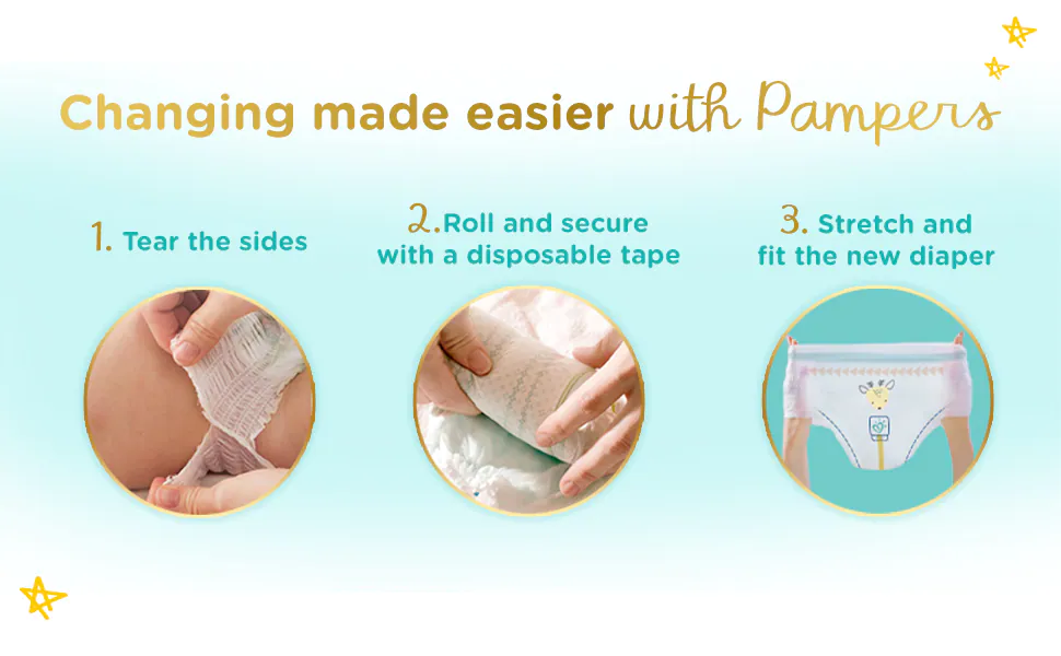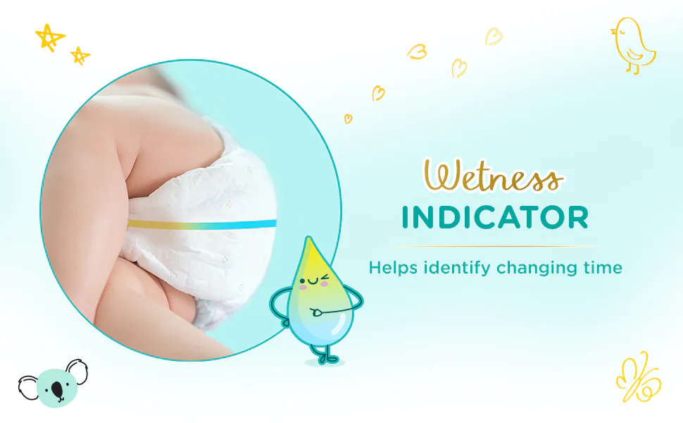 - The wetness indicator helps in easy diaper disposal by turning yellow to blue, indicating the diaper needs to be changed.